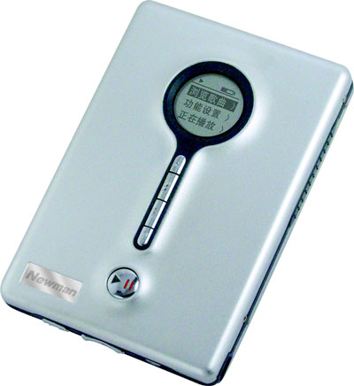 全金属弧线外壳质感细腻,看来纽曼正在向苹果学习呢。圆形白色背光液晶,面积虽小,但与面板装饰搭配起来相当有特色。圆形背景屏幕与竖排按键相连,有如一把开启科技之门的钥匙,突出了MP3的高贵典雅气质。主要功能是5段均衡器和32M缓存防震,在播放歌曲时,先将排列在播放列表最前面的若干歌曲提取至闪存内,再进行读取,因此使得音霸的防震效果长达20分钟。这样,在一边运动或路途的颠簸中,都不会影响收听的音效。