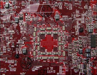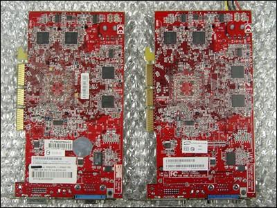 后来从一个购买到DELL 9800 Pro显卡的朋友处得知,这片被网上普遍认为是ATI原厂9800 Pro的显卡在用料上和ATI原厂在用料上并不一样,虽然同样采用ATI 9800 Pro公版PCB,但是在用料方面还是有一些小小的差别,至于这些不一样的地方会造成什么样的后果,目前还不得而知。零售版原厂9800PRO的电容及一些元件都有手工质检,用笔划过的标记,而DELL 9800PRO的电容上干干净净。网上有人传言,这批货是反修货,但朋友说丝毫看不出返修的痕迹,难道是洗板时洗掉了电容的标记,笔者对此产生了疑问。