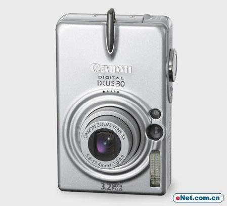 佳能IXUS 30采用1/2.5英寸320万像素CCD,3倍光学变焦镜头相当于35-105mm,最大光圈F2.8。ISO、白平衡、曝光补偿等均可调节。具有多种场景模式。背部采用一块2.0英寸11.8万像素的液晶显示屏。使用SD卡存储,专用锂电池。