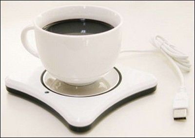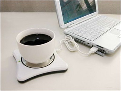 现在,日本一家出产USB外设的厂商推出了一种超搞怪的USB外设:USB咖啡加热器。只要把连线接在笔记本的USB接口上,即可随时享受一杯冒着热气的香喷喷的咖啡。