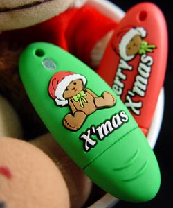 威刚公司发布了一款以圣诞节为主题的U盘产品,名叫做“圣诞碟”。这款U盘外观十分抢眼,使用了非常鲜明的色彩,碟身上有X’MAS和一个可爱的小熊的图案。相信它能在寒冷的圣诞节带给你女朋友一些温暖。这款产品的制造比较特殊,并非使用了以前直接印刷的方式进行制造,而是采用了橡胶一次成型的制造技术。