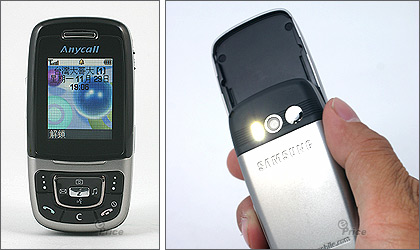 E638 内建 30 万像素相机,镜头位于手机背面,其左边设有闪光灯,右边则备有自拍镜,三样全都位于手机背面上方的黑色区块中。紧接着黑色区块的是银色系的电池,并特别印上 SAMSUNG 字样,让人们的印象能更为深刻。