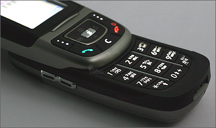 滑开后,按键依旧为黑色系列;设计者配合 E638 的冷黑,特地替按键配上白色背光,注入一股暖暖的温馨。特别的地方是,在进入拍摄模式后,按下按键「0」,可以手动开启闪光灯。