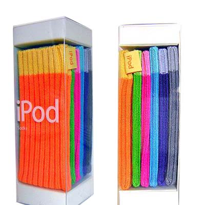iPod Socks是和iPod photo一起推出的,在寒冷的圣诞节让你的iPod也穿上鲜艳的毛衣吧。零售价为29美元(约合人民币240元)。