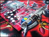 显卡正面布有大量的电容和元器件,核心上方配有银色散热器。接口方面,提供了VGA、DVI和TV-Out的三接口设计,能够为不同现实需求的用户所选择。