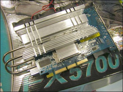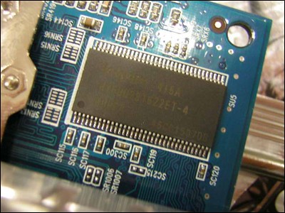 显存方面,正反共八颗的4ns现代DDR显存颗粒, 总容量为128MB,带宽为128bit,显存频率500MHz,现存使用的是TOSP封装。通过爆强的散热系统做保障,相信这块显卡会有不错的超频潜力的。