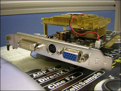 众所周知,由于NVIDIA宣布停产FX5700,市面上的FX5700显卡可以说是卖一块少一块,铭?极光FX5700增强版黄金斗士采用了性能更为优秀的FX5700V核心,FX5700V是NVIDIA针对OEM市场的产品,它与FX5700核心的最大区别就是将额定显存频率由550MHz提高到了600MHz。而且在热管散热装置配合下,能够较为容易地把核心频率提升到475MHz。