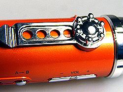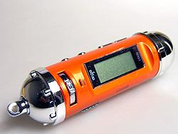 F009是在爱国者热销之作F008的基础上改进而来的,外观上的差异并不大,依然是经典的潜水艇造型,不过原先两头都能打开的“舱门”如今只能打开一个了。背面的夹子也设计成与潜水艇上的阀门类似,还可以旋开,当一端拧开露出电池时,你也许就会觉得那是鱼雷了。该机具有丝绸红、蜜桔橙、珍珠白三种颜色可选,总体来说,其外观相当讨巧,在MP3越来越同质化的今天,这款F009仅凭这副造型就已与众不同了。