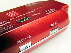 红色的FM-100。该机外表并不出众,相当朴实,不过还算轻巧,红色的这款尤其适合女孩使用。该机采用7号电池供电,一节电池可支持8小时左右的播放时间。另外,FM收音录音、复读、固件升级、Line in直录、6种EQ、定时关机,“麻雀虽小,五脏俱全”。