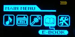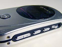 该机的按键主要排部在机身的右侧,分别是类似滚轮的快进快退确定的三向健,录音键,模式键,以及音量调节的键,而最主要的播放键位于机身的正面,同时它也起到了开机关机的作用,也可以取代确定键的作用,按键的操作手感也非常不错。菜单反应很灵敏,甚至有些过头,其菜单也是完全中文化的。不过令人遗憾的是三向键做得一般,容易引起误操作。