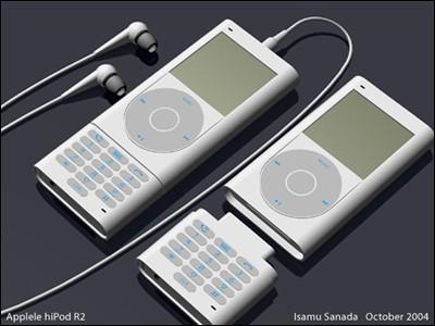 图为:加上手机配件的iPod Mini播放器构想图