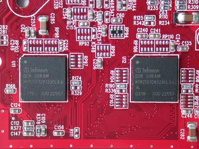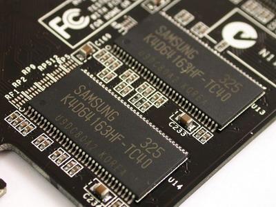 这里教大家认识两种不同封装的显存:图1为MicroBGA封装的显存颗粒,基本成正方形,并没有引脚外露。图2为TSOP封装的显存颗粒,成矩形,引脚是外露的,因此从外观上我们就可以很轻易地区分出这两种显存。