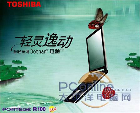 在今年九月,东芝又推出了“换芯”后的R100,其除了拥有了前辈的优良传统外,依旧轻薄,不过在配置上就作了升级,采用了Intel Pentium M(Dothan) 733(1.1GHz)超低电压版处理器,而以往的机型采用的是主频最高达到1GHz的第一代迅驰CPU。而其他配置方面,它则依旧还是搭载了855PM芯片组、Trident XP4显卡、256MB内存和40GB硬盘。而为了达到轻薄的目的,它也牺牲了性能、扩展性和舒适度等其他重要的因素,在这些方面的能力显得有点弱,不过另外赠第二块高容量长效锂电池,双电可同时使用,合计使用时间长达8.5小时。