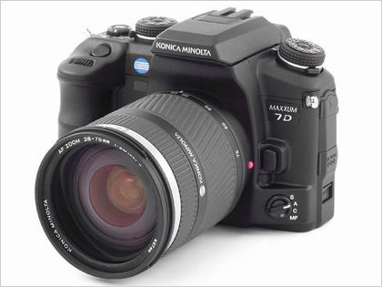 柯尼卡美能达α7D采用了金属机身,以23.5×15.7 mm尺寸的CCD作为感光元件,有效像素为600万,柯美在这款数码单反上整合了CCD防抖技术,兼容美能达的AF卡口镜头。这款数码单反支持9点自动对焦,7种白平衡模式,ISO感光度最高可以达到ISO 1600,快门速度最快可以达到1/4000秒,支持最慢30秒B门,连拍速度为每秒3张,最高可以连拍12张照片。