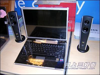 在大家比较关心的配置方面,这款笔记本采用了英特尔迅驰1.5G处理器,256M DDR内存,40G硬盘,8XDVD光驱,感觉是一款非常标准的迅驰配置笔记本。在外部接口方面,拥有S端子,三个USB2.0接口,一个1394接口,PC卡插槽和SD/MS卡读卡器,右边是电源接口、DVD光驱、USB接口以及耳机耳麦接口和音量调节器。