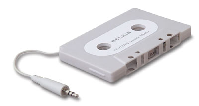 这种看似象磁带一样的东东,只不过比普通磁带多出了一根耳机线。它的大名叫魔卡磁带音频转播器,是把iPod里播放的音乐转换为磁信号,通过汽车的卡式音响播放出来。不少汽车的标准配置只有卡式音响,可是现在很少有人买磁带来听音乐,只得多花两三千块钱加装CD音响。现在用磁带音频转播器,无论想听什么音乐,只要装在iPod里面就能带在路上听了!