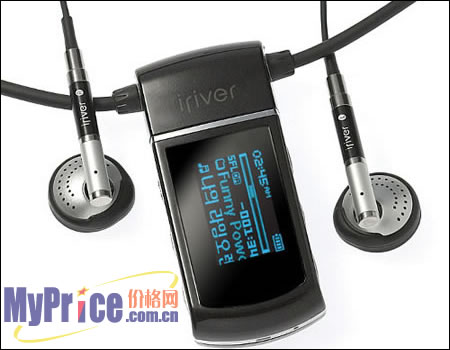 这是IRIVER首款采用OLED屏显示的MP3, 16级灰度,显示分辨率为96X64像素,可显示4行文字,字体为蓝色,在黑色屏幕的衬托下把高贵之感发挥的淋漓尽致。机身内置了四个屏幕保护动画,可随意更换,它还支持38国语言显示。