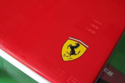 这台笔记本的顶盖采用了和法拉利赛车同样的鲜红色,显得极具动感和冲击力。顶盖上的两个标志清楚的表明了这台笔记本的“血统”??那就是Acer和Ferrari顶尖技术的结晶。据说,Ferrari 3200的烈马标志全是细腻的手工铺置上去,表面更是以手工磨光的,这些无不彰显出其品质的高贵。