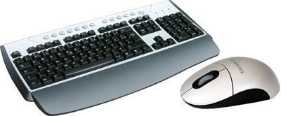 GK-5UW无线键鼠套装是技嘉公司的第一款无线键盘/无线光电鼠标套装产品。此套装的键盘和鼠标接收器采用了银色的外观设计,而鼠标则为一身的银色装备。此款键盘的上方设计了一系列的互联网按钮、还有邮箱以及自定义文件夹等快捷键等等达到二十个之多。另外,鼠标为分辨率为800dpi的无线光电鼠标,其接收器的接口为USB2.0接口,接收范围有效半径约为1.5m。目前此套装售价为450左右。
