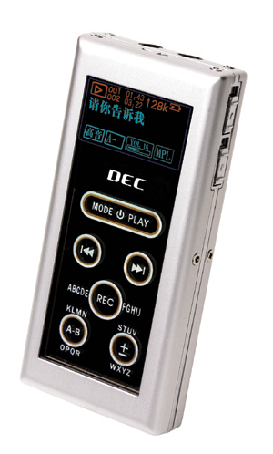 在音乐表现和功能方面,F60R针对触摸屏操作方案进行了特别优化,因而与同等价位的传统MP3相比更胜一筹。首批推出的产品中,F60R选择了128M和256M两种主流容量,除支持MP3播放外,还支持WMA、WAV、MPL等电脑上常见的音频格式,可用三重高音、超重低音、爵士、标准、古典、流行、摇滚7种音效模式播放,音乐场景丰富,切换自如。F60R录放“通吃”,支持LINE IN(线路输入)录音,录音长达8小时,足以应付日常应用。对于DEC F系列MP3产品最拿手的“F”(FIND发现)本领,F60R更是照单尽收,不仅支持A-B复读,还内置全波段FM收音,可随时将听力资料内录保存。F60R还拥有替代U盘的大容量移动存储功能,在WIN2000以上操作系统中无须安装驱动程序,办公、娱乐两不误。