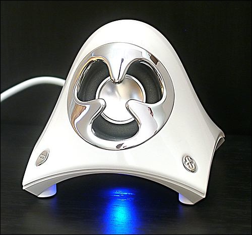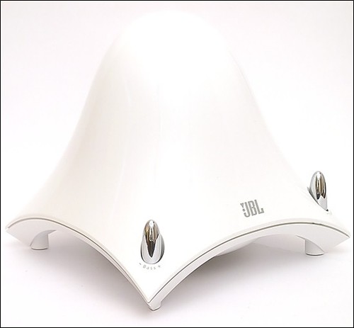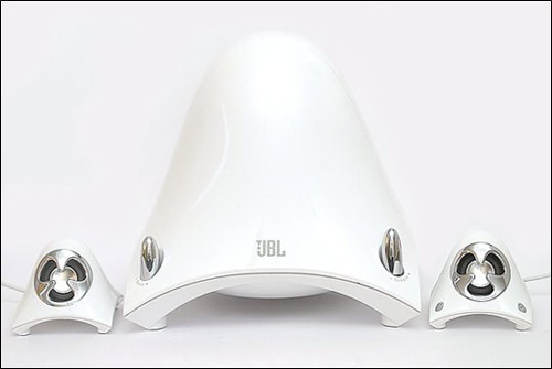 这就是名为JBL creature 太空战士的一款多媒体2.1音箱。提起它的出处Harman Multimedia公司,相信懂行的发烧友们应该都不陌生吧!它可是世界知名的音响设备制造商,其生产的产品大多以高品质为世人所著称。今天,小编看到的这款是以白色为主的一套音箱组合。低音炮和卫星音箱的大小虽有所差别,但形状统一。外观可以说既像UFO,也像水母,您自己去想象吧。但不管怎么说,它的出现都会令人眼前一亮。