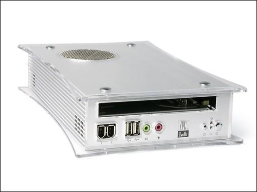 Iwill 的这款ZPC-gx准系统,这是据编辑所知道,到目前为止最小的准系统了。ZPC的造型非常小巧,如果说目前主流的准系统只有传统PC主机的1/3大小的话,这款准系统就只有主流准系统的1/3大。银白色的外观,两边覆盖透明的有机玻璃,使这款准系统显得晶莹剔透。