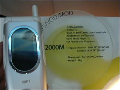 PH-S2000M工作于CDMA 1X(800MHz)网络,主屏采用260K色TFT-LCD,分辨率为120 x 160像素,外屏采用的是65K色TFT-LCD,分辨率为96 x 64像素。该手机支持MP3播放,支持VOD/MOD,再加上YAMAHA64和弦铃声,绝对算是一款娱乐型手机的典范了。