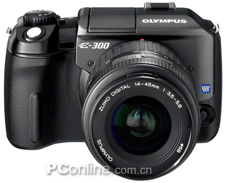 2004年的数码单反市场本来就被CN两家已经争得不可开交,不料在2004年即将结束的时候,奥林巴斯公司推出了自己的新型号数码单反相机:E300。这款目前套机售价仅为7000元的数码单反相机使用的是有效象素高达800万的4/3系统FFT-CCD,同时E300可以兼容所有的4/3系统的镜头。并支持RAW、RAW+JPEG、TIFF、JPEG(三种压缩比)等不同格式保存。测光方式为数字ESP、中央平均测光和点测光三种。另外提供了超声波除尘系统,很好地解决了数码单反相机感光元件入尘问题。在存储方面使用大众化的CF卡或者微硬盘。采用1.8英寸、LCD视野率高达95%的液晶取景器。随机配套的镜头为E 14-45 mm F3.5-F5.6镜头,经过焦段转换后变为28~90的常用焦段。