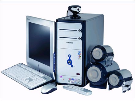 欣喜1000D采用的处理器是Intel现在面向低端普及市场的赛扬D处理器,频率2.66GHz,比起旧的赛扬4性能提升不少,而且价格较低,现在已经成为了低端市场的宠儿之一。256M DDR内存,80G硬盘,17?CRT纯平显示器,16X DVD-ROM都是主流的配置,足够现在的入门用户和低端用户使用了。但是欣喜1000D采用的是S3的集成显卡,性能上比较失色,因此不大适合用来运行3D游戏,用于影视欣赏就没问题。欣喜1000D的最大特色莫过于其标榜的“媒体中心电脑”,能如此称呼,自然要有其先决条件,用户可以完全不需要使用键盘、鼠标,仅仅使用一个经过特别设计的遥控器就能轻松地远距离全面控制电脑,非常方便地实现照片浏览、音乐播放、视频播放、电视收看/录制、影碟播放五大大数码娱乐功能。除遥控器外键盘和机箱的设计也有一些独特的考虑,通过键盘上的照片、音乐、视频快捷键还可以方便的管理、维护相册、音乐库和视频库;键盘和主机面板上还有播放控制,音量控制等多个按键给使用者带来尽可能多的方便。现在各大厂家基本上都把媒体中心电脑作为高额盈利的一种产品,而七喜能够在这样的低价下推出自己的媒体中心,确实精神可嘉。