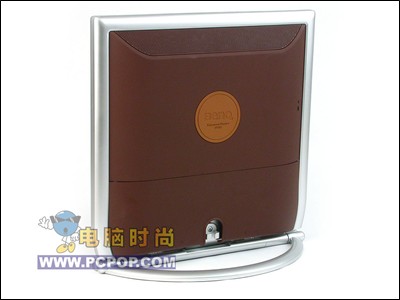 显示器背面,皮革质感外壳包裹的金属身躯