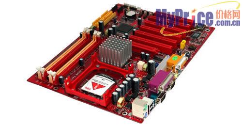 采用了两相回路供电,具备两条双通DDR400n内存插槽,5条PCI插槽,AGP8X显卡插槽,集成6声道音效芯片,没有集成网络芯片,同样,它不支持RAID和IEEE1394。