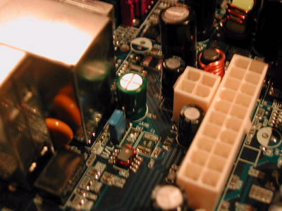 蓝色的PCB大板,采用了三相供电技术,完全符合Intel VRM10.0规范,全面支持最新的Prescott核心的P4处理器,功率富余量大,运行更加稳定。