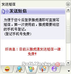 而雅虎通的手机短信功能则目前全部免费,优惠更多(图5),看来各个即时通讯开发商都把手机短信服务作为吸引客户的重要卖点。