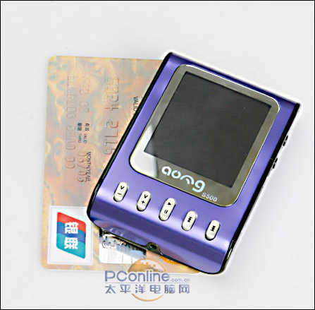 奥美嘉在国内数码厂商中算是比较有实力的一个,为了进一步扩大其MP3产品的影响力,推出吟唱风情系列 S500,黑色的显示屏幕占了2/3的面积,下方是五颗长形按键。边角位置着重的处理,黑色边线和紫色外壳的颜色搭配给予强烈的视觉冲击力。机侧还有四颗小小的圆形按键,机器顶部还有两个插孔,分别是3.5mm耳机输出和2.5mm的LINE-IN/USB接口,底部有个小小的RESET按键。整体体积只有72*50*13mm,体积比其他的彩屏还比较有优势的。