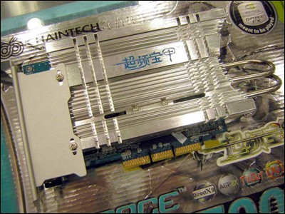 “超频宝甲”顾名思义,它的特点就在于显卡外这套厚厚的热管散热系统。正反两片全铝打造的硕大散热片,将显卡夹在中间,通过两根热管相连,几乎覆盖了整片显卡。就算用上如此夸张的热管散热器,承启的工程师还是不肯罢手,在显卡顶端有附加上了三个主动式散热静音风扇。不仅对散热性能提供了更为有利的帮助,更为超频提供了有力的保证。