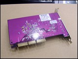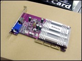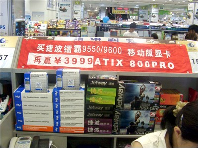 此款R9550,实际上是出自捷波的产品,名称为“镭霸9550移动版”。要问它为什么没有焊接显存芯片,我们可以从它的显示核心谈起。其实,此款显卡采用的是ATI的移动图形芯片??ATI Radeon9600 Mobility。显存容量为64MB,显存位宽为128bit。而显示核心的频率更达到了325MHz的标准。要知道,这个可是R9600的默认核心频率呀。