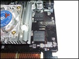 另外我们可以看出这款显卡的做工中规中矩,不过这也保证了它工作的稳定性。在这款显卡的性能方面,它采用了8颗mBGA封装的HY 2.5ns显存,组成双128的规格。而工作频率达到了400/700MHz的核心/显存频率,几乎达到了5600U的水平,而在我们打开散热风扇后,看到的核心也的确为5600Ultra。如此说来,其在理论上它还有一定的超频潜力。