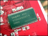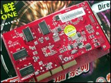 从外观上看,该款显卡通体呈红色,正面PCB上散热系统也为红色。虽然有些朋友可能会说,该卡的做工显得简单了些。但这正是移动版显卡的特点。由于采用了移动版R9700,因此便拥有了集成度更高、发热量更小的芯片特点。不过,在该卡上,还是采用了不少的贴片电容。