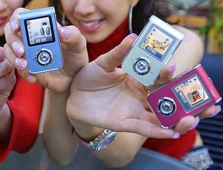 这款产品依然延续三星一贯时尚的特点,首先机身有多种亮丽颜色可选,其次使用了彩屏,而且从图中看效果还相当不错。除了可以听音乐以外,这款产品还可以支持文本阅读和图像浏览。不过T7没有使用1英寸的小硬盘,依然使用的是传统的闪存,容量比较大,256MB起跳,最高到1GB,目前只在韩国销售。