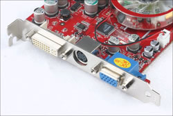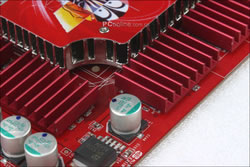 采用耕升惯用的红色PCB底板,散热装置设计的非常出色,在显存颗粒上覆盖了独立的散热片,解决了超频后的散热问题。显卡在靠近接口处放置了一块Silicon Image出品的Sili164CT64 DVI转换芯片,以此保证DVI接口输出全数字信号的品质。在输出接口方面是比较传统的DVI、VGA以及S-Video,满足大多数人的要求。