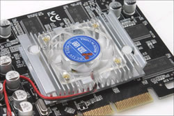 散热风扇仍然沿用战斗版中采用的铝质散热器,噪音和散热效果都不错。输出接口也是传统的DVI、VGA以及S-Video。