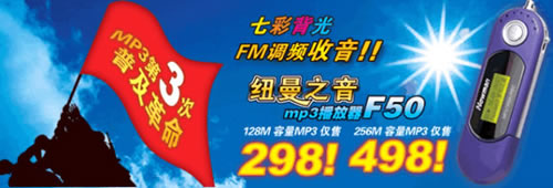 | 298元新品F50 引爆纽曼第三次MP3普及革命 |