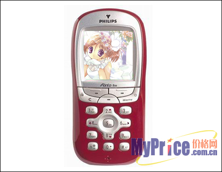 推荐指数:★★★★★ 这款手机的外观也非常可爱,机身尺寸98×47×21毫米,净重仅为85克,采用内置天线,更方便孩子携带。机身有钻石金、水晶蓝、宝石红三款颜色可供选择。 820拥有一个宽大的全彩色液晶显示屏,分辨率达到112×112像素,256位彩色,9行文字显示,显示效果不错,孩子可以选择自己喜欢的图片作为墙纸和屏幕保护。 820机身可存储300组(每组7个记录)电话号码,它还是飞利浦首款支持无线蓝牙技术的手机;并承袭了飞利浦特有的声控技术,预置有近40个声控指令。它的通话时间长达5.5小时,待机时间长达12天,可以给孩子减少许多充电的麻烦。