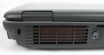 这款机子最大的特点就是选用了移动版的赛扬2.7GHz处理器,性能十分强劲,但高主频的处理器肯定会产生大量的热力,所以这款高性能的笔记本在机身后部留有巨大的CPU散热出风口,我们从外面可以看到机身内部密集的纯铜散热鳍片,应该说A60比较合理的解决了性能和散热之间的关系。