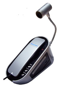 在上面这张图中大家可以看到,那个像一部电话座机的DD就是实现宽带关联技术的核心组件??宽带通E1000。它将宽带的通讯应用包括电话手柄、摄像头集合在一起,还集成了网上支付、QQ聊天、电子邮件、视频节目和数码接口等功能,并按照人体工程学原理合理地结合在一起,试想一下 ,你拿着电话手柄、对着摄像头与远方的亲友视频聊天,这会是多么时尚前卫的享受。