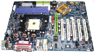 技嘉的GA-K8NS 10F主板,采用蓝色PCB板,标准ATX架构;采用了NVIDIA的nForce3 250芯片组,支持754接口的K8处理器,板载ALC850支持6声道音效输出和10/100M网卡,两个SATA接口,支持RAID模式;提供3个DIMM插槽,支持DDR400内存;一个AGP 8X/4X显卡插槽,五个PCI 插槽。采用了三相供电设计,为64位运算提供了稳定的基础。