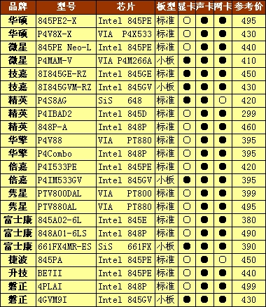 其次,由于Intel自断了865/848P的供货,同时与之配套的南桥芯片又出来了不利消息,所以目前不少厂商在低端市场开始主推845系列的产品。来自市场的最新消息,过去常见的845GL芯片因此也开始缺货。所以在本文中,我们又重新看到了845PE/E、845GV这样的“老”产品。由于历史的局限性,这样的芯片在产品规格上有一定的不足。用户在选购时,需要特别注意这些问题。