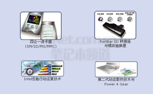 参考价格:8899元 配置: Intel Pentium-M 1.5G/256M/30G/14.1寸/COMBO/动态共享64M