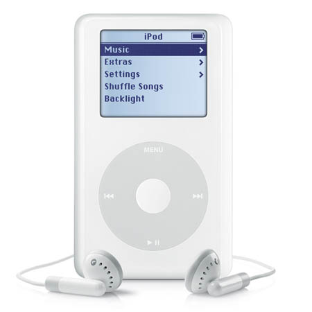 自从2001年10月23日,苹果公司推出的一款以硬盘作为MP3随身听存储介质的产品??iPod,一直凭着独特的外形、精巧的设计和不俗的手感而傲视高端随身听市场。虽然硬盘式MP3并不是苹果最早提出,但苹果公司是把这个赋有创意的构思发扬得最好的。值得一提的是iPod系列产品从第一代到第三代都一直稳居高端市场第一把“交椅”,其间分辨推出了5G、10G、15G、20G、40G共五个版本。2004年iPod更是众望所归,推出iPod4代、iPod mini、iPod photo以及iPod U2,让iPod的“粉丝们”可谓是过足了瘾。