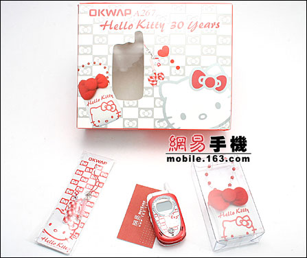 下面为大家推荐的依然是一款来自台湾的品牌OKWAP,它的手机多以女性为销售对象,而且OKWAP对于卡通主题手机似乎非常关注,特别是HelloKitty更是情有独钟。以前就曾经推出过一款HelloKitty手机,近日OKWAP有推出了A267的HelloKitty三十周年纪念版。